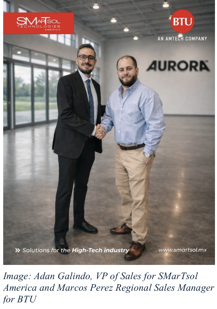 BTU International, Inc., a leading supplier of advanced thermal processing equipment for the electronics manufacturing market, announced that SMarTsol America will represent the company in Texas, effective January 15, 2026. The agreement covers BTU’s full line of products, including reflow ovens and belt furnaces.